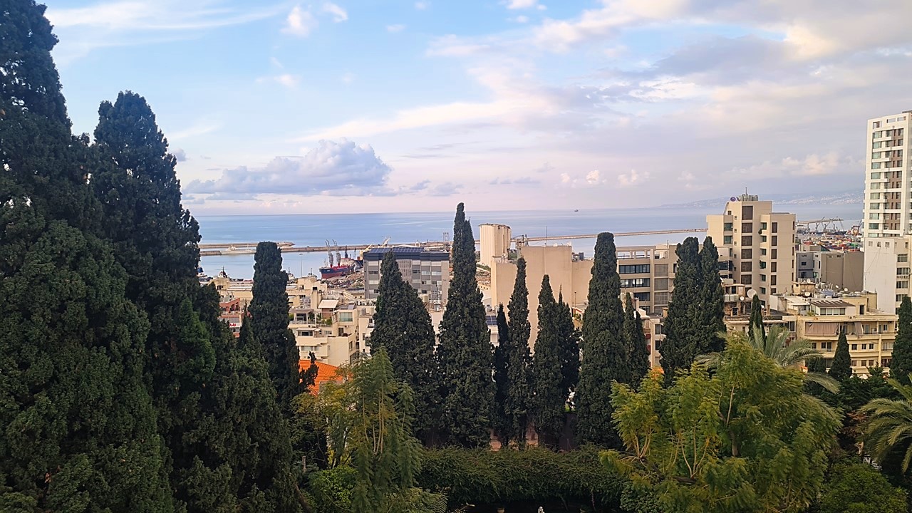 A près de 20 mètres de hauteur, de la terrasse nous regardons au loin, vers le port. On aperçoit à travers les cyprès, les silos du port encore debout, mais en partie déchiquetés. Les autres ont été soufflés par l’explosion. Nous déambulons sur le toit-terrasse entièrement restauré et prenons quelques photos. Les toitures sont magnifiques, totalement refaites, avec les célèbres tuiles de Marseille. Je contemple une dernière fois le parc merveilleux, véritable jardin du paradis. Il se fait tard…