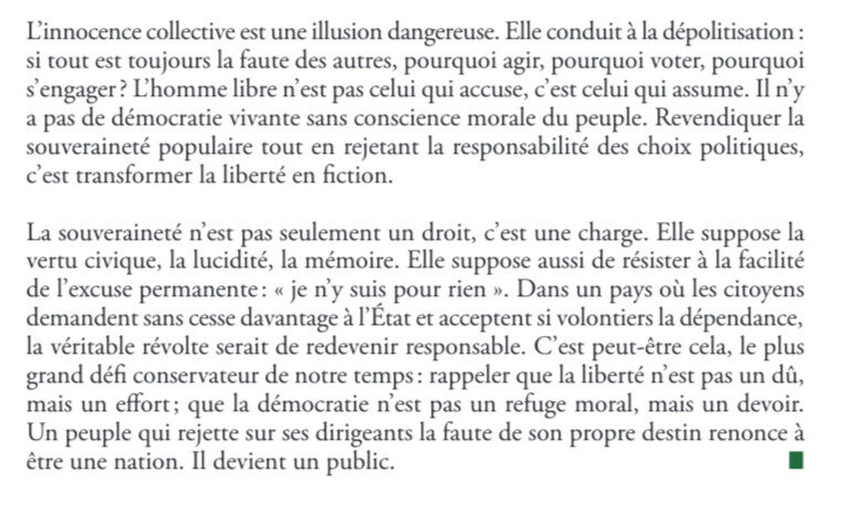 Le vrai changement, la véritable espérance ne se situe donc pas dans la course sans fin à l’égalitarisme des socialistes, ni dans l’instauration d’un pouvoir fort, cher aux conservateurs et aux nationalistes, ni dans le libre échange capitaliste — tous, en effet prônent l’autonomie de l’homme —, mais dans la restauration de la légitimité, naturellement garante des identités et de la justice qui sont ses raisons d’être.