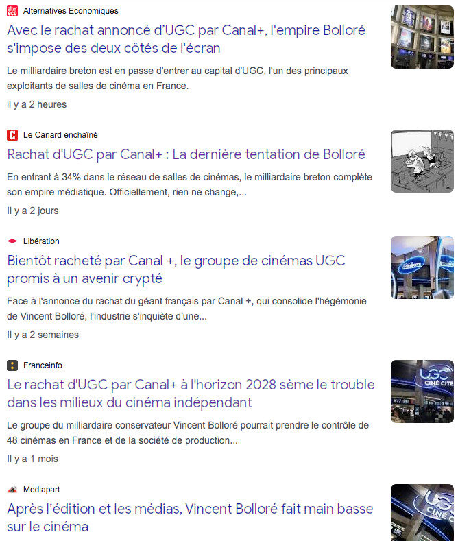 “Ce sera la première fois qu’un groupe aura autant de puissance à chaque étape. StudioCanal sera en position d’écraser tout le monde”, redoute une productrice sous couvert de l’anonymat. Canal+ mettrait aussi la main sur l’UGC Ciné Cité les Halles à Paris, plus grande salle d’Europe et baromètre de la fréquentation en France. L’association de cinéastes indépendants Acid, qui organise chaque année une section parallèle au festival à Cannes, dit craindre “un déclin de la diversité du cinéma”. Perdra-t-on les navets qui font un bide systématique ?