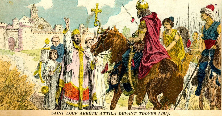 Saint Loup de l’abbaye de Lérins arrête Attila devant Troyes – © Wikipedia