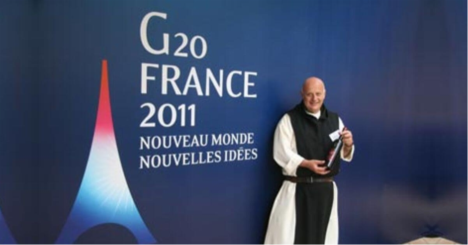 Frère M.-P. de l’abbaye de Lérins présentant le vin Saint-Salonius lors du G20 en 2011