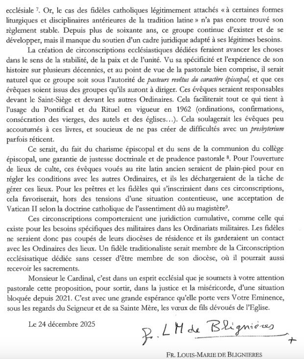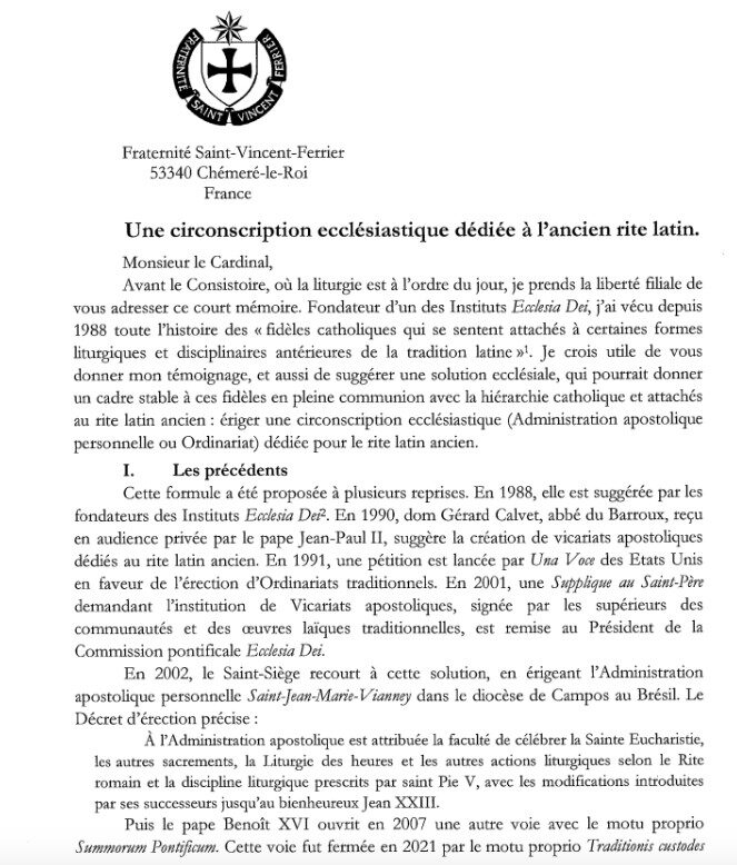 Publiée exclusivement par Diane Montagna en français et en traduction anglaise, cette lettre datée du 24 décembre vise à ouvrir un dialogue constructif et à fournir un cadre pastoral stable aux communautés et aux fidèles attachés à la liturgie romaine traditionnelle.