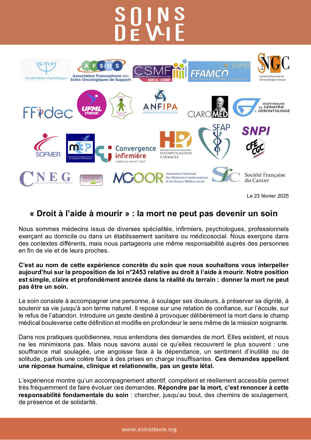 Donner la mort ne peut pas être un soin : l’inquiétude des médecins