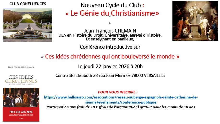 22 janvier : Conférence de Jean-François CHEMAIN : « Ces idées chrétiennes qui ont bouleversé le monde », à Versailles
