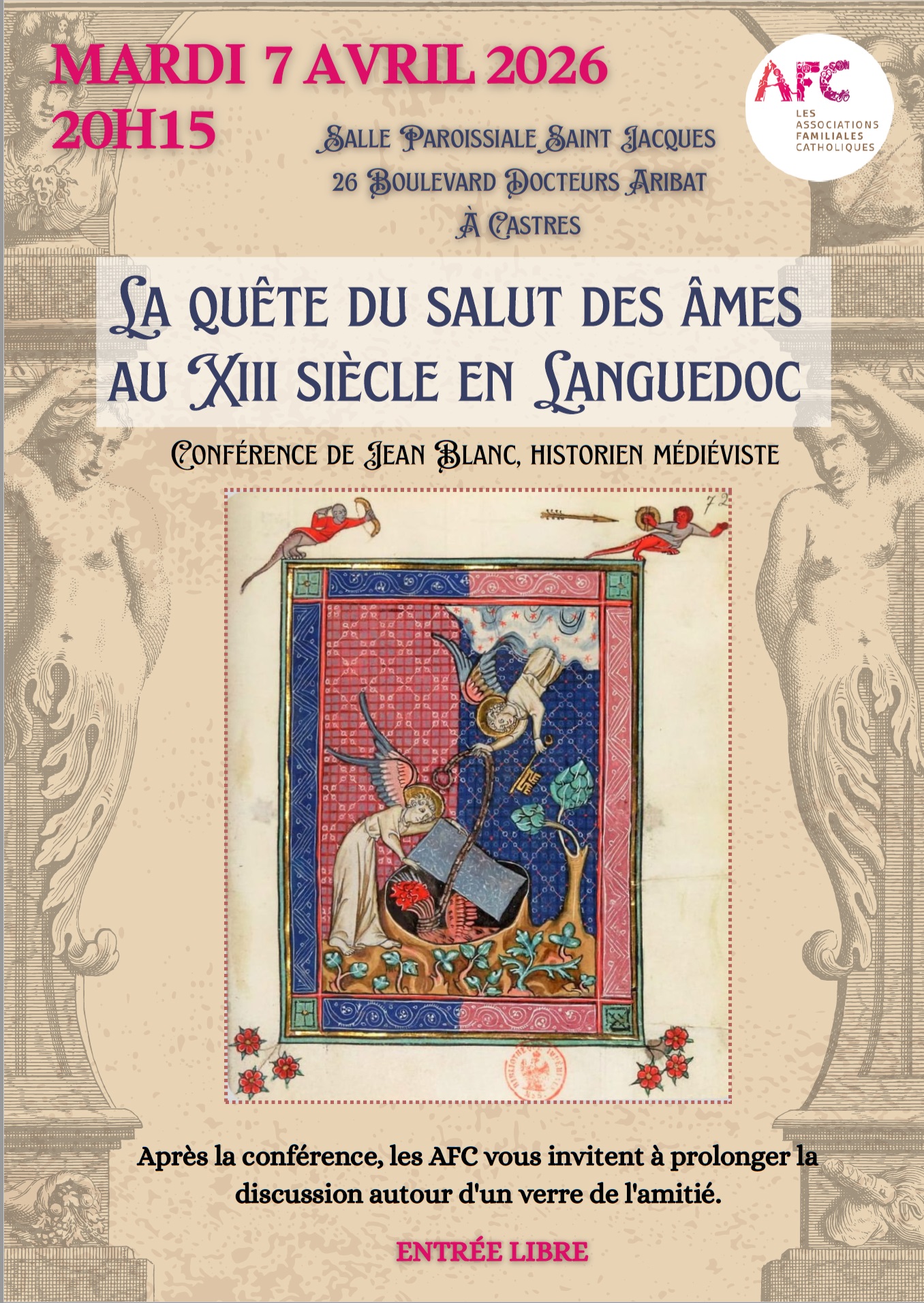 Nous sommes heureux de vous inviter à la conférence de M. Jean Blanc : “la quête du salut des âmes au XIIIe siècle en Languedoc”