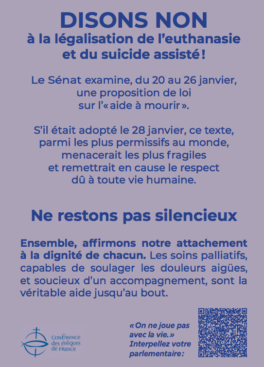 La Conférence des évêques de France diffuse un visuel pour encourager les fidèles à interpeller les parlementaires concernant la loi sur la fin de vie :