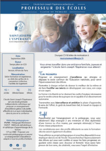 impliquer dans la vie de l’école. Vous recherchez l’épanouissement