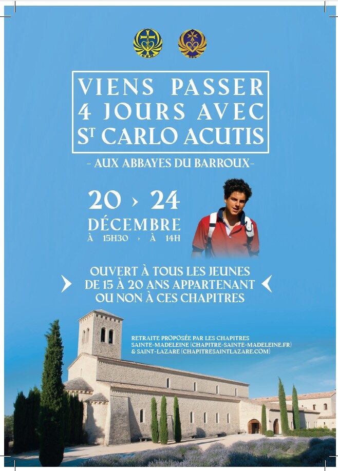 "Viens passer 4 jours avec Saint Carlo Acutis" Les Chapitre Sainte Madeleine et Chapitre Sainte Lazare proposent aux jeunes de 15 à 20 ans une retraite spirituelle du 20 au […]