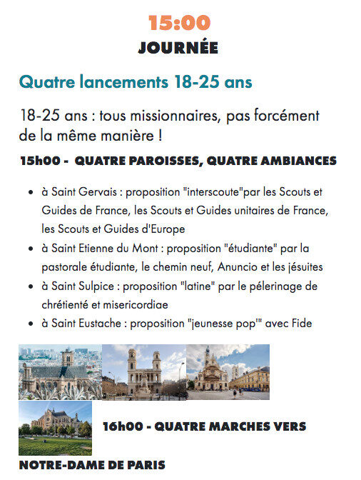 “Vous serez mes témoins jusqu’aux extrémités de la Terre !” Avant le pèlerinage de Chartres 2026 sur ce thème missionnaire, Notre-Dame de Chrétienté répond à l’invitation du Congrès Mission 2025 à Paris et organise le samedi 8 novembre à 15h, en l’église Saint-Sulpice (2 rue Palatine – M° St Sulpice / Mabillon) : prédication, chant des vêpres, puis grande procession dans les rues de Paris jusqu’à Notre-Dame.