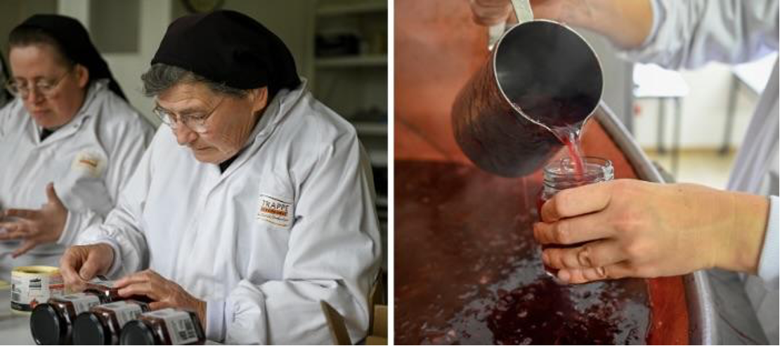 Et ce jour-là arrive en 1923 ! Ce sont des moniales trappistines qui arrivent et relancent la machine. Elles redonnent vie au lieu, travaillent, prient, accueillent, et inventent deux trésors locaux : le fameux fromage au vin de noix ainsi que des confitures artisanales dont elles seules ont le secret.