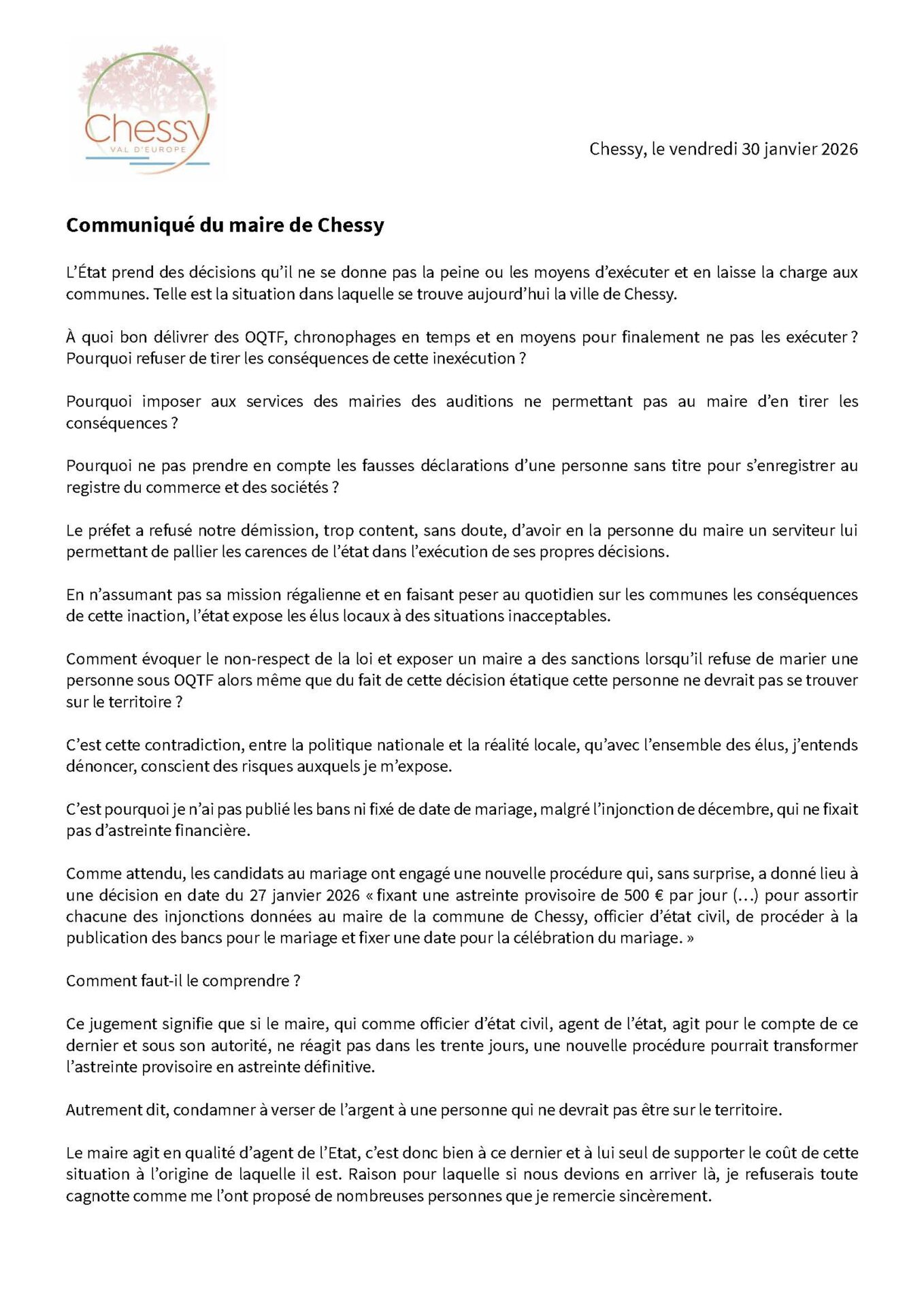 « À quoi bon délivrer des OQTF, chronophages en temps et en moyens pour finalement ne pas les exécuter ? Pourquoi refuser de tirer les conséquences de cette inexécution ? Pourquoi imposer aux services des mairies des auditions ne permettant pas au maire d’en tirer les conséquences ».