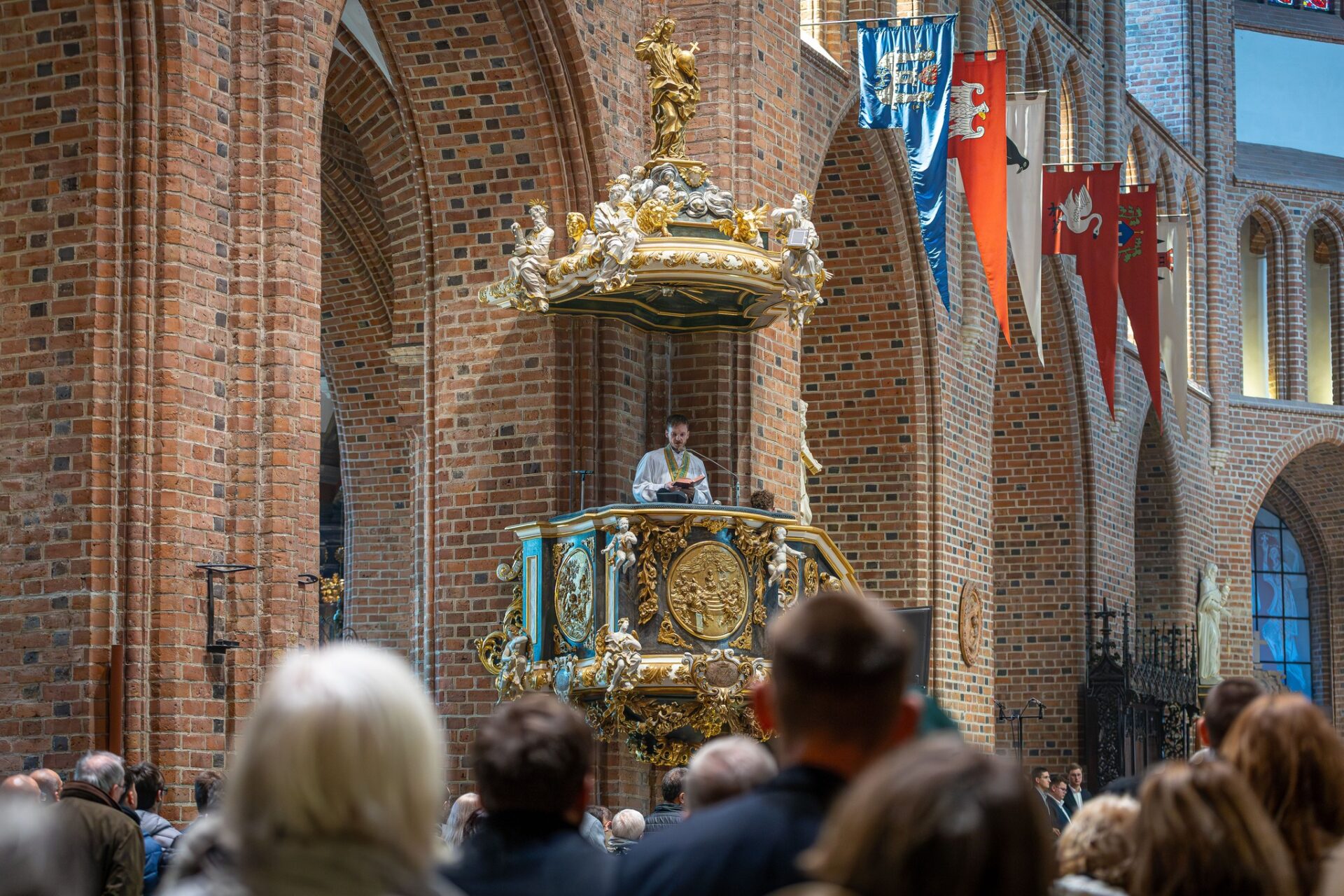 La Pologne célèbre actuellement le Millenium Regni Poloniae, c’est-à-dire le millénaire du couronnement du premier roi de Pologne. Dimanche dernier, dans la cathédrale de Poznań, où se trouve la tombe du premier roi de Pologne, Boleslas Chrobry, une messe a été célébrée selon l’ancien rite romain à l’intention des souverains qui y reposent et « pour la fidélité à l’héritage royal de la Pologne ainsi que pour un gouvernement sage et juste de la République » . La messe clôturait la 8e édition du Festival Katharsis, qui avait cette année pour thème « Le retour du roi ». Au cours de cette messe jubilaire, la Missa Marer Dei, composée spécialement pour l’occasion, a été interprétée. Cette messe s’inspire du motif mélodique du chant médiéval « Bogurodzica », premier hymne du royaume de Pologne. Elle a été composée par Marcel Pérès , musicien, chanteur, organiste, musicologue, compositeur, chercheur et praticien français des plus anciennes traditions du chant liturgique de l’Église occidentale. Il a également dirigé personnellement le chœur du festival lors de l’exécution de la messe dans la cathédrale de Poznań. L’intention du compositeur et des organisateurs du festival, qui souhaitaient que la première représentation ait un caractère liturgique et non concertant, s’est ainsi réalisée, lors de la messe pour laquelle cette composition a été créée. Ce fut un acte extrêmement symbolique et émouvant, un peu comme le lancement d’un navire et le choix de son nom, que nous appelons volontiers et couramment son baptême. Lors de la conférence qui a clôturé le festival, Marcel Pérès a notamment déclaré qu’il souhaitait que cette messe « soit en quelque sorte un viatique qui accompagnera la Pologne dans son voyage vers l’avenir, en gardant pieusement en mémoire ces grands moments de l’histoire d’une nation qui, malgré les blessures du passé, a su conserver une foi vivante et féconde ». Il a également souligné qu’il souhaitait vivement que cette messe, qu’il a appelée en latin Missa Mater Dei afin de lui donner une dimension universelle, ne soit pas seulement célébrée de manière festive et sous forme de concert, mais qu’elle entre dans la pratique de la liturgie traditionnelle vivante. Au cours de son homélie, le prêtre célébrant la messe, le père Przemysław Zgórecki, a évoqué la réalité de la maison qui est au centre de notre culture, et la maison des Piast qui est à l’origine de notre histoire, et le roi Boleslas qui, lorsqu’il a reçu l’onction et est devenu l’oint, a reçu la mission de créer une maison sur la terre polonaise. « Une maison où il y a de la place pour tout le monde, et où chacun peut se sentir désiré, accepté et aimé. Car telle est la réalité de la maison du Royaume de Dieu ». À la fin de la liturgie, les fidèles, très nombreux dans la cathédrale, ont chanté ensemble l’hymne « Bogurodzica ».