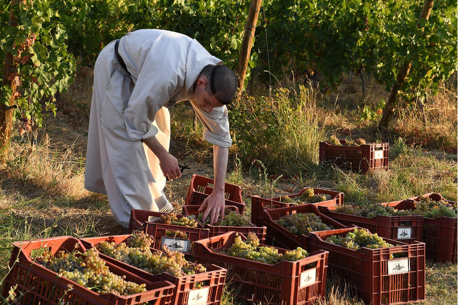 Un moine bénédictin au travail dans les vignes de l’abbaye Saint-Madeleine du Barroux © Abbaye Sainte-Madeleine du Barroux