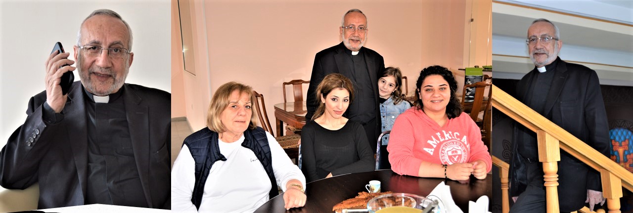 Mgr raconte son histoire familiale, parle du génocide, de son père, Pedros, orphelin dès l’âge de 5 ans, qui a dû fuir la barbarie turque. Ce génocide de 1915-1920 avait déjà commencé quelques années auparavant. En 1909, ont lieu les massacres d’Adana, dans l’empire Ottoman, l’ancienne Cilicie. Ces massacres s’orchestrent à la suite d’une contre-révolution qui tend à remettre au pouvoir le sultan déchu, Abdülhamid II. Ce-dernier avait été à l’origine des massacres de 1896, qui avait déjà fait plus de 200 000 morts du côté des arméniens. 13 ans plus tard, ils sont près de 30 000 à tomber lors de pogroms sanguinaires. C’est dans ce contexte de fin de règne de l’Empire Ottoman et de massacres, qu’en 1915, le génocide arménien est déclenché. Il est de plus grande ampleur et provoquera la mort d’1,5 million personnes. La famille de l’archevêque, qui vit en Turquie, n’y échappe pas. « Mon père a été recueilli par les Salésiens de Turin. Avant le génocide, il vivait à Van, en Turquie. Il pensait avoir perdu toute sa famille. Mais, en 1943, en Syrie, il retrouve son frère Georges. » Son père aurait dû devenir salésien. Séminariste, il est envoyé par sa communauté à Jérusalem. Quand il retrouve son frère, ce-dernier lui propose de quitter les salésiens et de rencontrer celle qui deviendra son épouse, Rosa. « Mes parents se sont mariés en 1944 à Alep, en Syrie, en se faisant la promesse que leur premier enfant serait consacré à Dieu. Je suis né le 24 novembre 1946. A 12 ans, selon leurs vœux, je rentre au Petit-Séminaire des Arméniens Catholiques de Beyrouth. Je les revois, pour la première fois, en 1973. Je fais la connaissance de mes 3 petites sœurs que je ne connaissais pas. En tout, nous sommes 8. »
