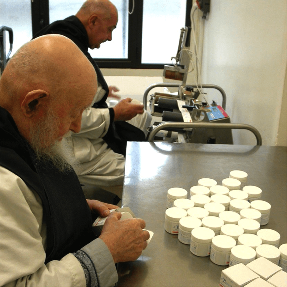 Un moine trappiste prépare du baume d’Aiguebelle – Divine Box