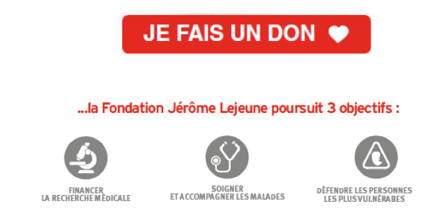 La France n’a développé aucune politique publique de santé en leur faveur et la Fondation Jérôme Lejeune ne bénéficie d’aucune subvention publique. Pour mener à bien nos missions, nous dépendons donc uniquement de votre générosité. Nous avons besoin de votre soutien financier.