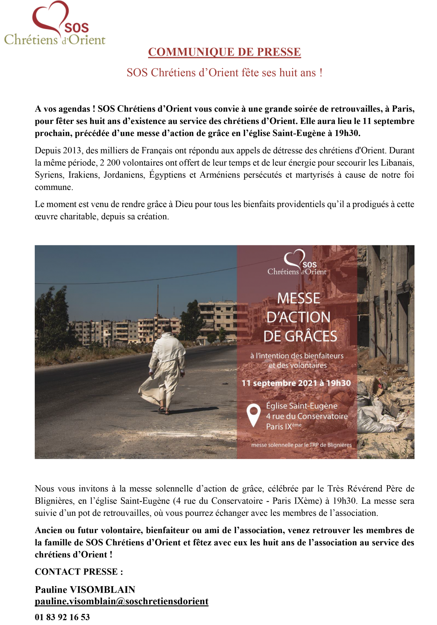 11 septembre : 8e anniversaire de SOS Chrétiens d’Orient