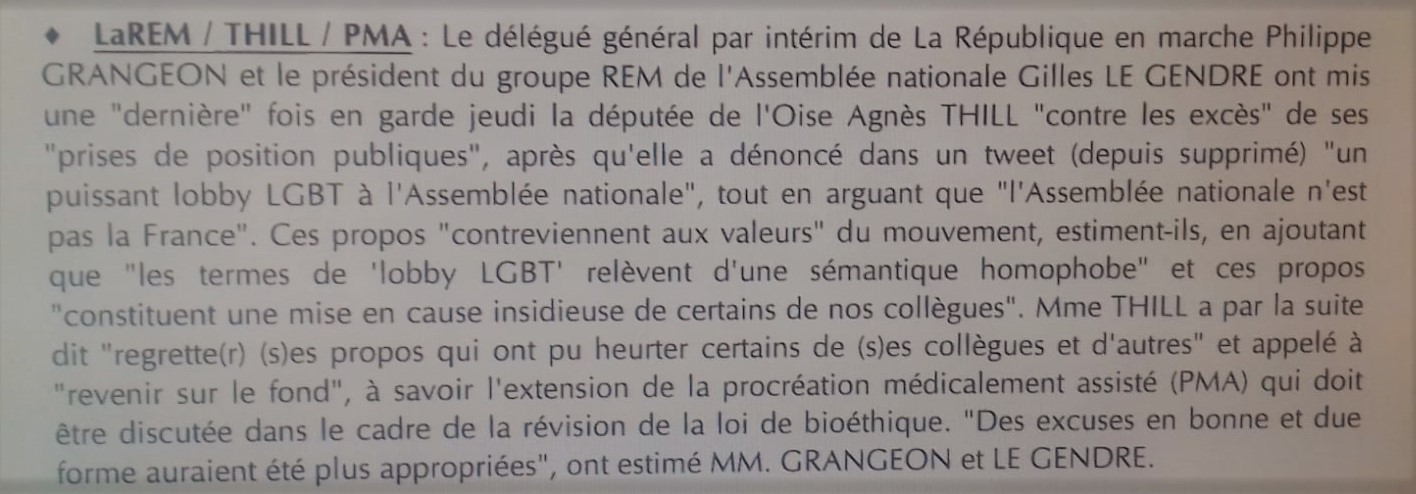 Au sein des rangs de La République en Marche, il est interdit de tenir un discours différent des transhumanistes. Le député Agnès Thill subit les foudres du lobby LGBT depuis quelques jours :