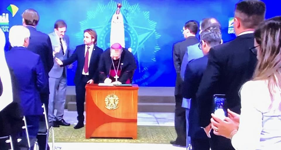 Mgr Fernando Arêas Rifan, évêque de l’Administration Apostolique Saint-Jean Marie Vianney à Campos au Brésil (diocèse attaché à la forme extraordinaire du rite romain), a consacré le Brésil u Coeur Immaculé de Marie le 21 mai en présence du Président Jair Bolsonaro. Les parlementaires catholiques étaient présents.