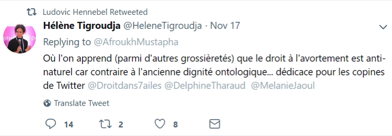 Le nouveau livre de Grégor Puppinck, Les droits de l’homme dénaturé, a fait réagir Hélène Tigroudja, qui vient d’être élue pour représenter la France au Comité des droits de l’homme de l’ONU : « nauséabond », « affligeant », « d’un mépris total de ce qui est non-européen ». Surtout, elle nous ordonne « ne le lisez pas !! », en reconnaissant elle-même ne pas l’avoir lu non plus. L’échange ci-dessous, à l’occasion d’une interview de Grégor Puppinck au Figaro Vox, montre que cette « experte indépendante » est en réalité une militante pro-avortement.