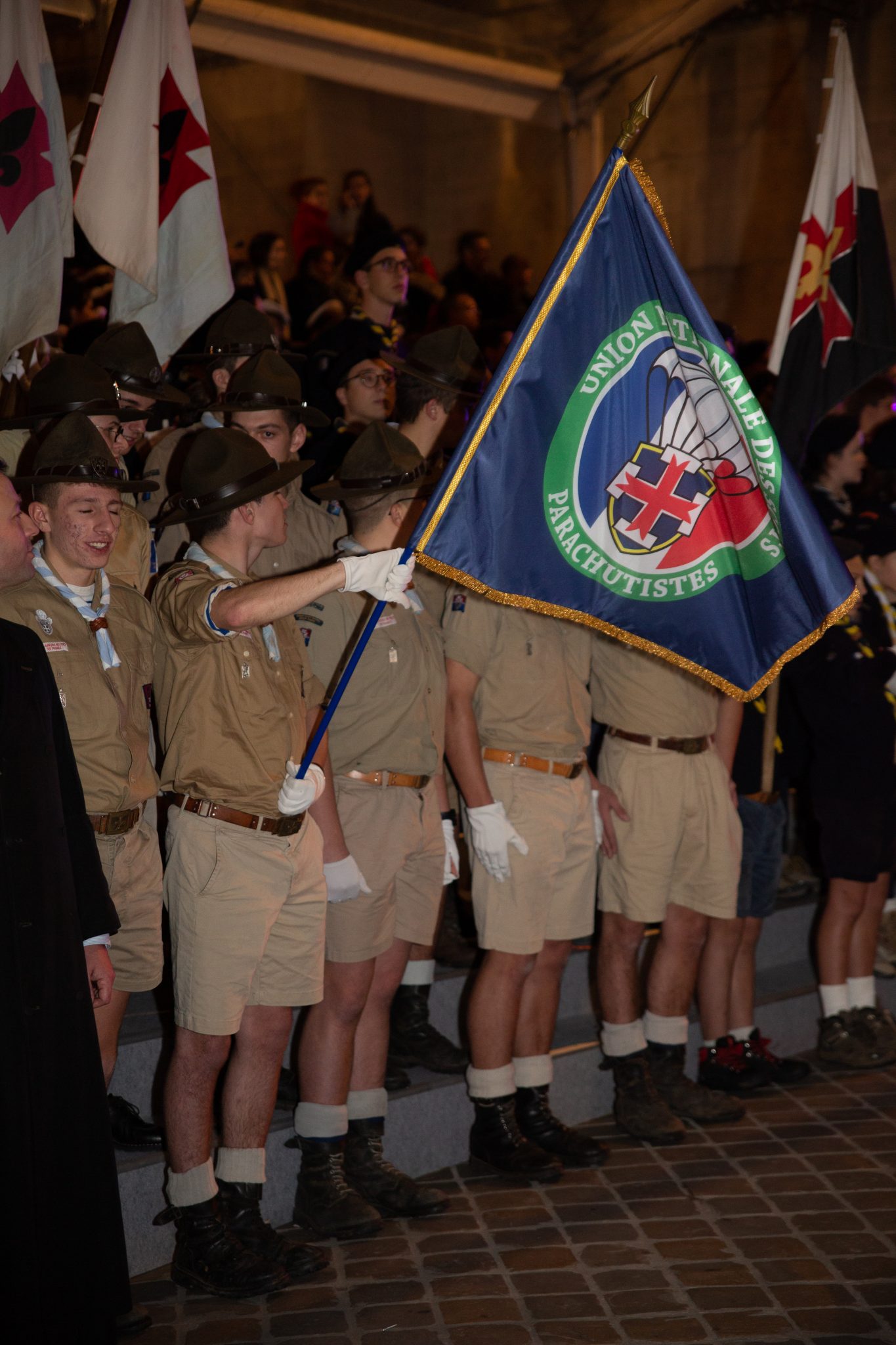 En ce qui concerne l’Union Nationale des Scouts Parachutistes, elle a pu venir à la fin de la mise en place car sa place avait été réservée au centre du dispositif. Sous l’œil visiblement étonné de plusieurs mouvements de scoutisme, on a pu néanmoins entendre quelques applaudissements.