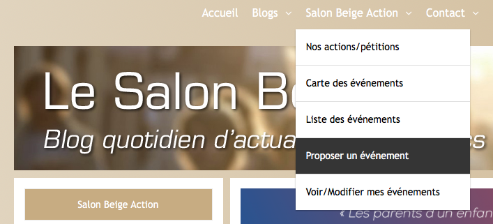 Si vous voulez annoncer un évènement, il vous suffit de le rédiger ici dans le menu “Salon beige Action” :